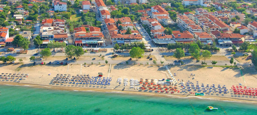 Морският бряг е смесен – пясъчно-каменист. Но пък е  чист и камъчетата са дребни, а плажната ивица е огромна и не е пренаселена. Чадъри и шезлонги са поставени пред романтичните кафененца по плажната алея. Има и по-отдалечени и неохраняеми, които предлагат спокойствие, далеч от светски живот и непокътната природа.