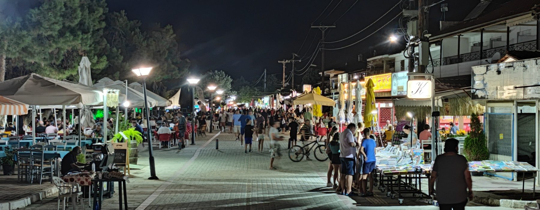 Тук ще намерите приятни местенца, в които да вечеряте, да пиете студено фрапе или да се забавлявате. От терасите на крайбрежните таверни можете да се наслаждавате на залива, докато чакате сервитьора да ви донесе огромните порции калмари и октоподи.